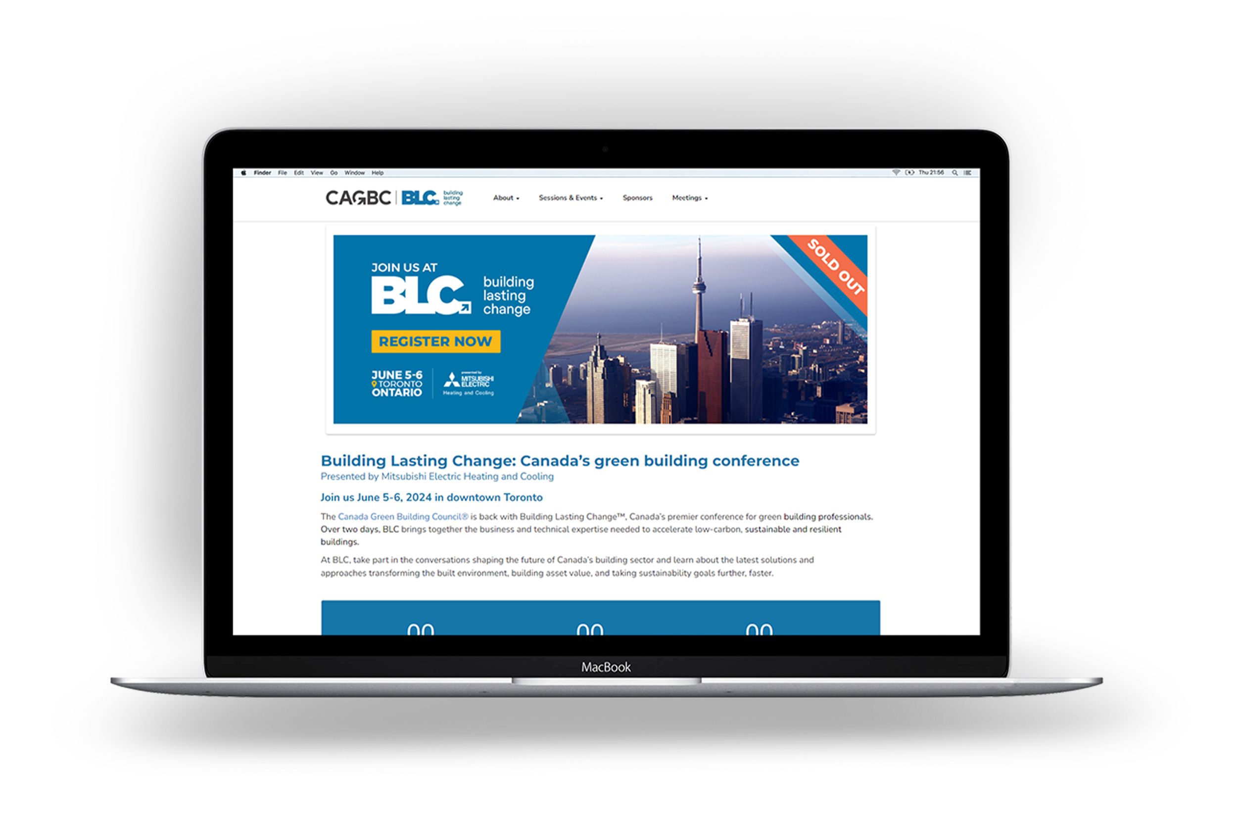 The team at CAGBC needed support with design and asset creation for their Building Lasting Change conference. Held in Toronto from June 5 – 6, 2024, Building Lasting Change brings together business and technical expertise to decarbonize Canada’s large buildings. This conference connects Canada’s green building sector with key decision-makers and experts, offering forums on national issues and tracks on the technical and business sides of green buildings.We were thrilled to collaborate with the CAGBC team to enhance their brand identity and create assets and make this event impactful.